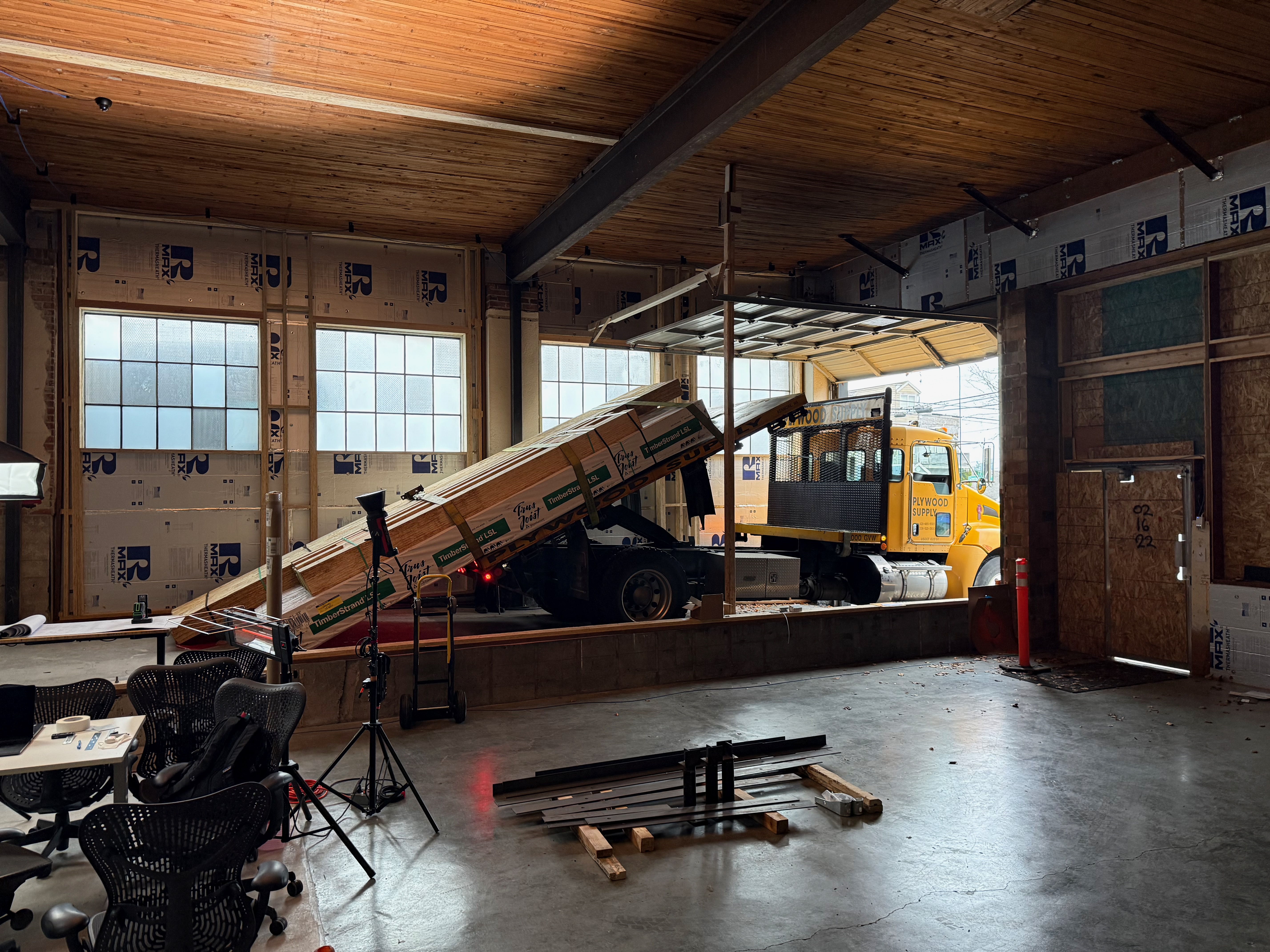 At least we have a roll-up door large enough to fit a single-axle delivery truck and/or my grip truck...